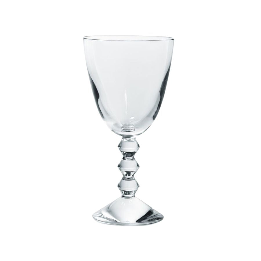 The Vega Clear crystal glass has a sleek and modern silhouette. The geometric stem is eye-catching: three stacked diamond-shaped silhouette resembles exquisite beads strung together or Brancusi’s geometric totems. Designed for Baccarat by Savinel & Rozé, the upper smoothness is juxtaposed with lower angularity: the curvature of the bowl contrasts sharply with the bevel-cut zigzag of the stem. The innovative form adds to the enjoyment of sipping a quality vintage. The Vega set also includes a champagne flute, martini glass, and other bar and tableware.