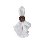 Rosettes of handcrafted leather bring a touch or romance and a dose of rich texture to the table. A combination of whimsical, elegant, and unexpected, they make the perfect finishing touch to casual and formal settings alike.