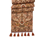 Bring a gorgeous texture to your table with this sumptuous runner that was inspired by heirloom tapestries. Featuring intricate embroidery throughout, tassels on either end, and a golden palette that evokes the richness of the earth, this runner is stunning dressed up or down, all season long.
