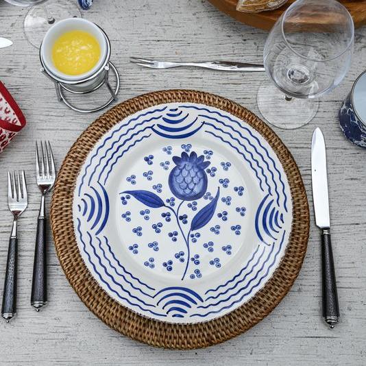 Casa Nuno Blue and White Dinner Plate Pomegranate/Waves