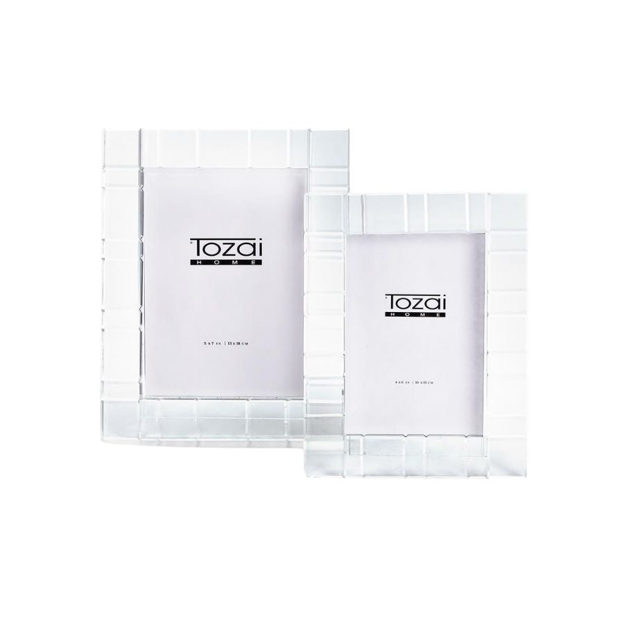 This beautifully sculpted crystal photo frame adds elegance to any room. Designed with a plaid hand cut design, your photo is sure to look its best. Each frame includes a crystal glass easel that swivels allowing the frame to stand both horizontally and vertically. A crystal photo frame in an elegant gift box makes a wonderful gift.