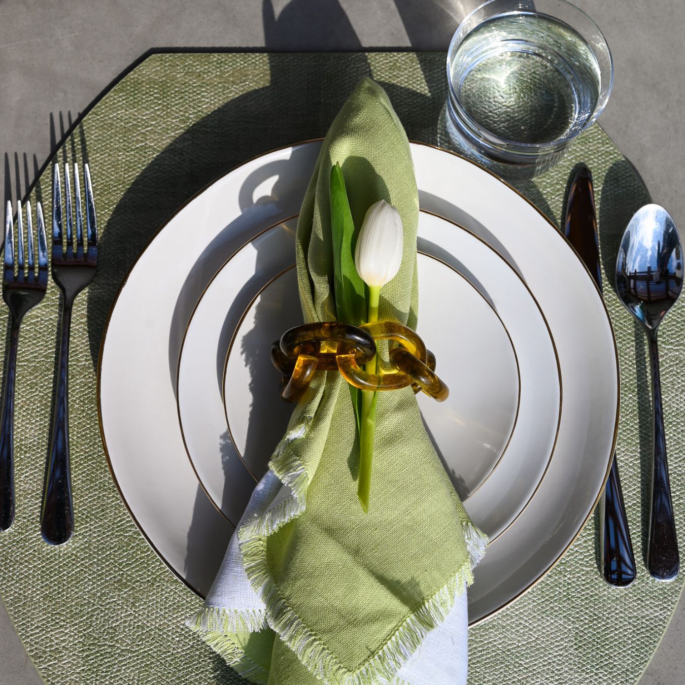 Bodrum's most sophisticated mat group yet. The fabric is incredibly elegant and there are 8 breathtaking colors. The new luster mats have a brand-new construction, they are firmer with vinyl on both sides. Also available as trays and napkin rings to complete the look.
