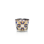 A collection of four Baobab scented candles in various sizes, featuring a vintage 24-carat gold and midnight blue print with a four-leaf clover design.