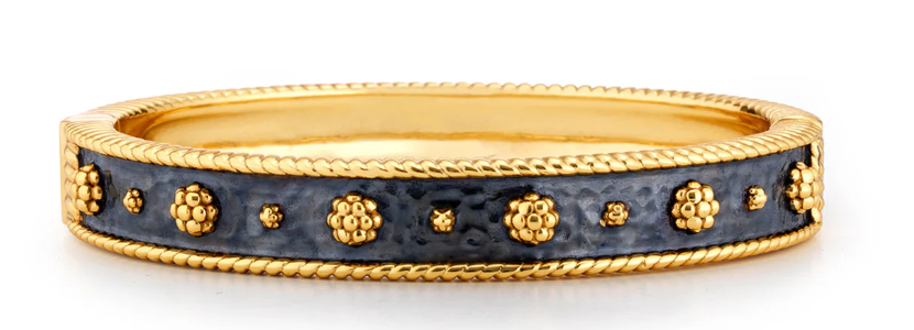 This go-to bangle is designed to mix, match, layer and stack alongside other bracelets for all the occasions and everyday adventures in your datebook. Featuring a threaded border and circumference of golden berries, this gleaming piece is gorgeous with everything—day to night.