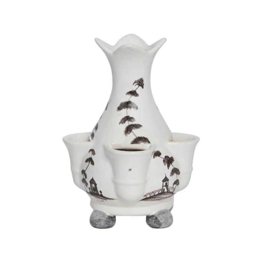 We dreamt up this petite vessel to showcase flowers at their very best. The central vase is ideal for bunches and bouquets, while the individual reservoirs at the base are for spotlighting single stems. The result is a blossoming sculpture—depicting idyllic scenes of the flora and fauna of our beloved Country Estate—and is fit to grace any dining table, entryway, or mantel with a gorgeous bounty of blooms.