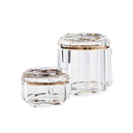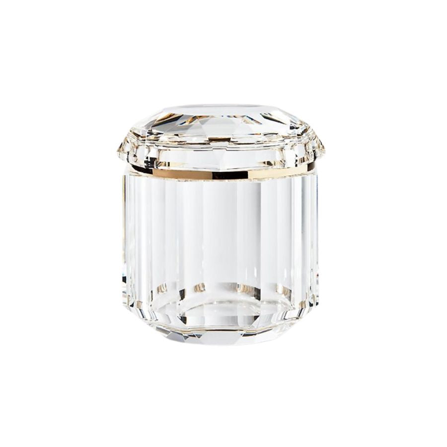 Inspired by Ralph Lauren jewelry, this faceted crystal jar with brass trim is a beautiful complement to a desk or a vanity.
