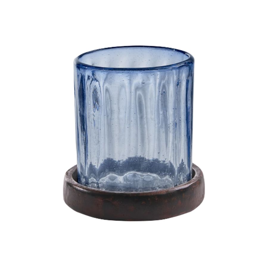 The Vicente Vase is a stunning addition to any home decor. Its mouth blown glass and detachable wax cast coaster create a unique and beautiful piece that will make a statement in any room. Perfect for entertaining or as a focal point, this azure double old-fashioned glass is both elegant and functional.