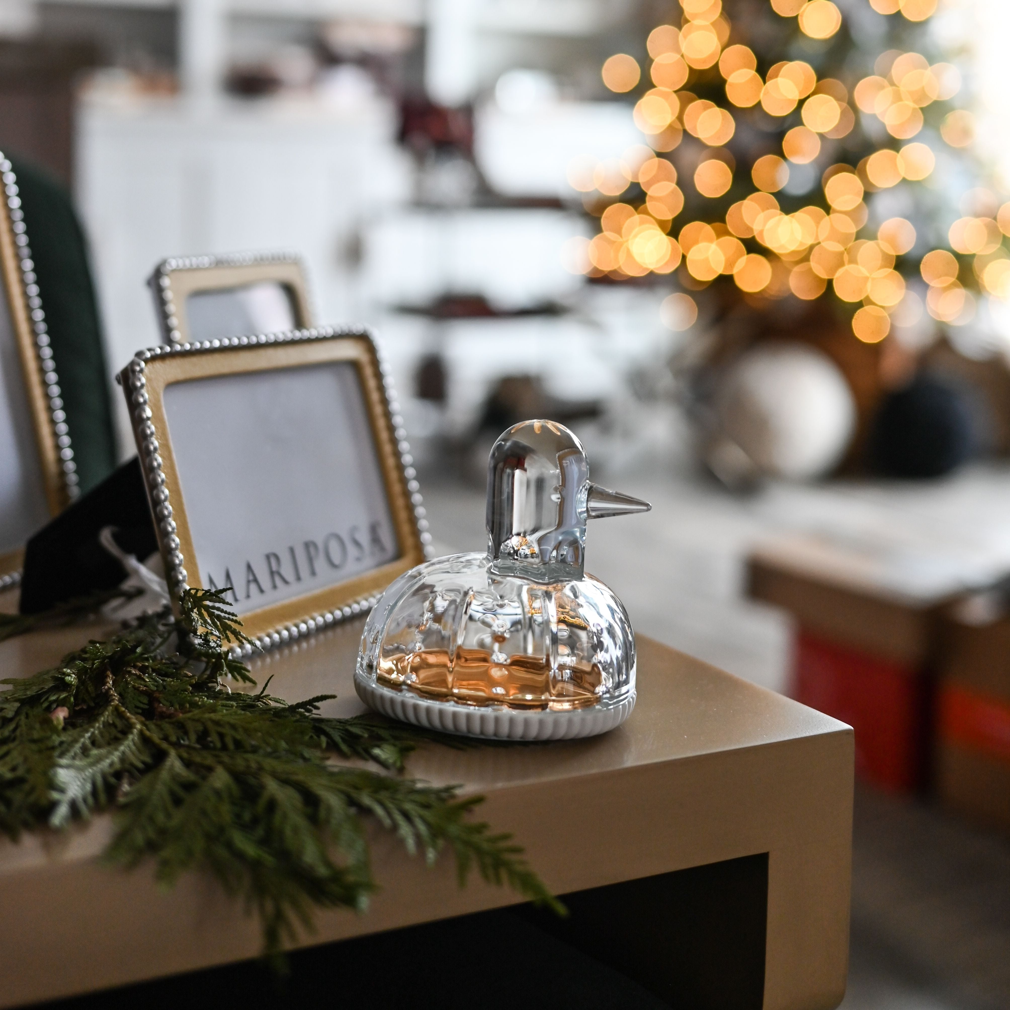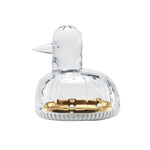 Created by Jaime Hayon, the Zoo jewelry box in crystal and porcelain is the ideal design accessory for storing your finest adornments and small precious objects. Composed of a crystal cover in the shape of a duck and a porcelain base by Lladró , the jewelry box revisited by Jaime Hayon displays a unique and quirky style. With its pointed beak and its delicately cut rounded silhouette, the duck brings a little fantasy to your interior. As a small glamorous detail, a few touches of gold applied by hand on the animal's head provide the final signature.